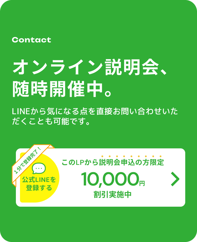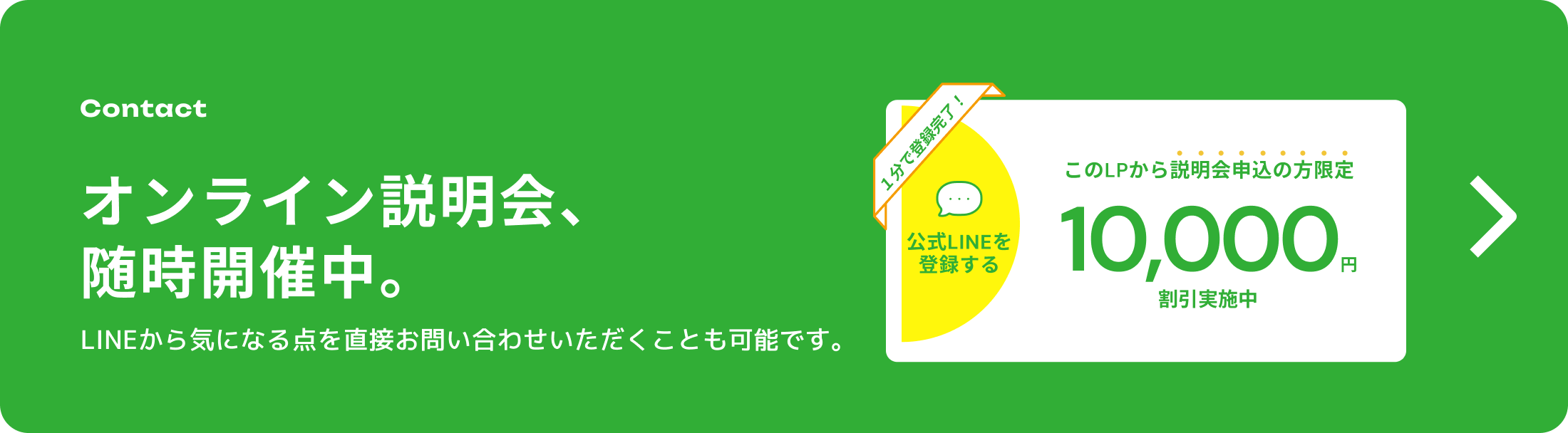 最終受付は2025/3/6になりますが、申し込み枠に限りがあるためなるべく早めにお申し込みいただくのが良いかと思います。お申し込み方法についてはLINEから行うことが出来ますので、まずは公式LINEにご登録ください。プログラムの詳細については随時説明会を実施しておりますのでこちらもLINEからご予約いただければと思います。